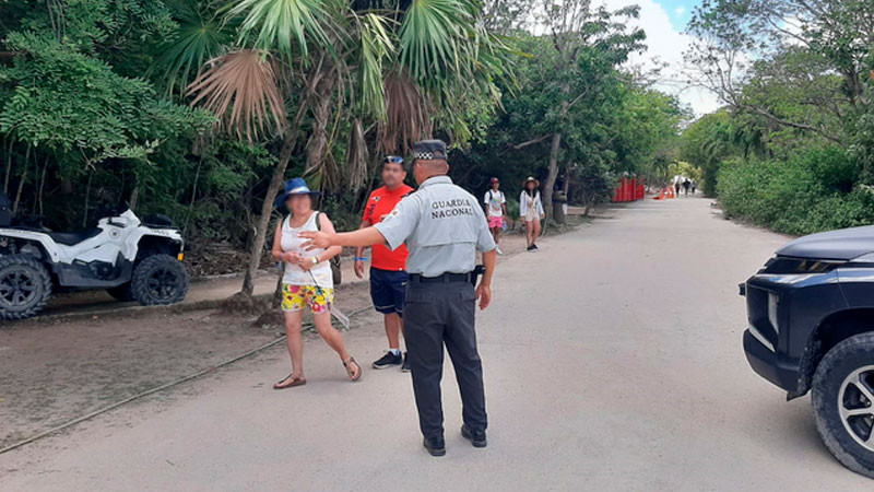 En cumplimiento de la Estrategia Nacional de Seguridad Pública, en Quintana Roo, la Guardia Nacional resguarda y brinda seguridad a turistas en el Parque Nacional del Jaguar, ubicado en Tulum, catalogado como área natural protegida con más de dos mil hectáreas.